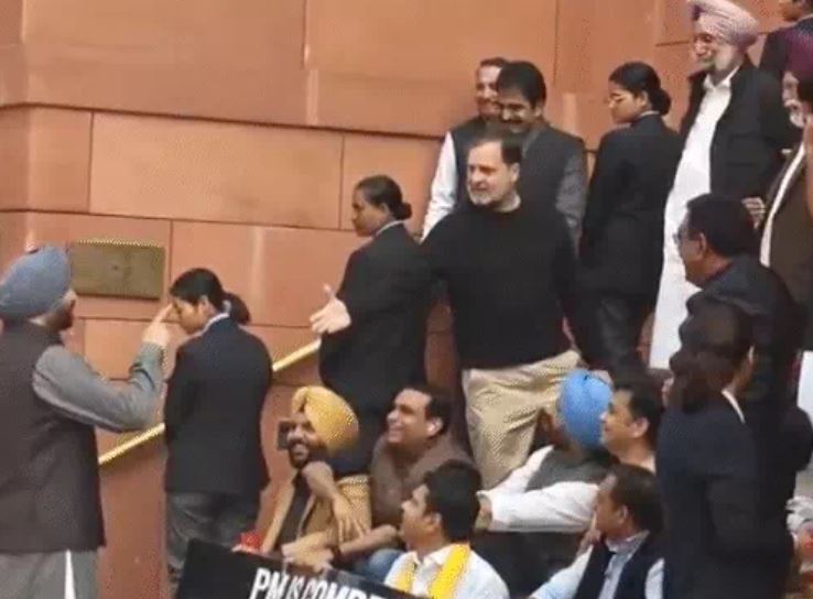 राहुल ने बीजेपी नेता बिट्टू को गद्दार दोस्त बोल दिया। मकर द्वार के पास कांग्रेस के कुछ सांसद प्रदर्शन कर रहे थे। इसी दौरान राहुल गांधी ने रावनीत सिंह बिट्टू को पास से गुजरते देखकर कहा कि यहां एक गद्दार चल रहा है, देखिए इसका चेहरा। राहुल गांधी ने हाथ मिलाने की पेशकश करते हुए कहा कि हैलो भाई, मेरे गद्दार दोस्त। चिंता मत करो, आप वापस (कांग्रेस में) आ जाओगे। जिस पर बीजेपी नेता ने कड़ी प्रतिक्रिया देते हुए गांधी को देश का दुश्मन कहा। यह कहते हुए केंद्रीय राज्य मंत्री रवनीत सिंह बिट्टू ने उनसे हाथ मिलाने से मना कर दिया और दोनों नेताओं को एक-दूसरे से बात करते देखा गया।