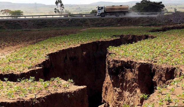 वैज्ञानिकों ने सर्वे में जिस बात का अंदेशा जताया था अब वह सच साबित होने लगा है। अफ्रीका महाद्वीप एक असाधारण जियो-लॉजिकल घटना का अनुभव कर रहा है। इस घटना ने दुनियाभर के भूगर्भ वैज्ञानिकों का ध्यान अपनी तरफ खींचा है। वैज्ञानिकों ने महसूस किया है कि टेक्टोनिक फोर्स ने अफ्रीका भू-भाग को चीरना शुरू कर दिया है। हैरान करने वाली बात ये है कि अब ये दिखने लगा है कि अफ्रीका महाद्वीप के टूटने के साथ बीच में एक नये महासागर का निर्माण शुरू हो गया है। ये पूर्वी अफ्रीका में हो रहा है। बता दें कि इससे पहले आए सर्वे में यह दरार 3500 किलोमीटर लंबी थी। अब यह दरार 6000 वर्ग किलोमीटर हो चुकी है।